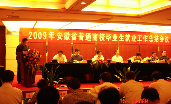 10月14日,安徽省2009年普通高校毕业生就业工作总结会议在六安市隆重召开,副院长张群和招生就业工作处、学科建设与研究生处相关同志参加了会议,省毕业生就业委员会副主任、教工委书记、教育厅厅长程艺在会上作了工作报告,张群副院长代表永利官网在大会作典型发言。