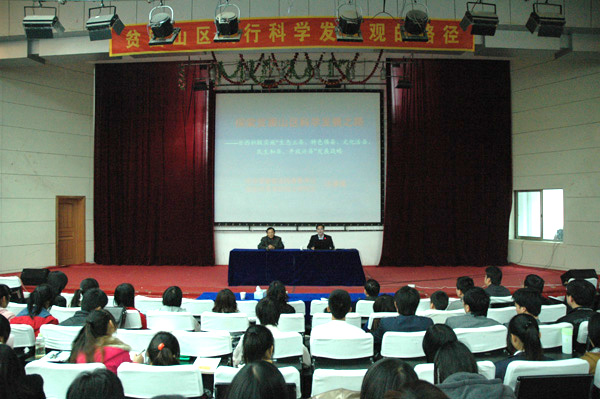 11月10日下午,岳西县县委书记、县人大常委会主任、安庆师范学院首届研究生会主席汪谦慎应邀在永利官网龙山校区逸夫图书馆东报告厅作了题为“探索贫困山区推动科学发展之路”的学术报告,校党委副书记、副院长朱士群主持讲座,学科建设与研究生教育处负责同志及近500名本科生、研究生聆听了报告会。