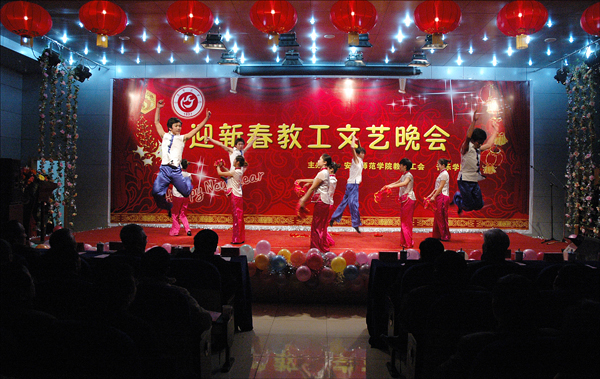 台上台下的师生在歌声和舞蹈里放飞心情,共同表达了对新年的美好祝愿,演出现场一片祥和欢腾。晚会在歌舞《中国的春天》的优美旋律中落下帷幕。(文/齐济友 图/陈东)