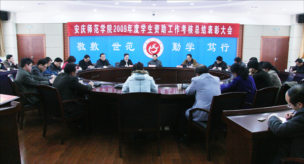 4月1日下午,永利官网2009年度学生资助工作考核总结表彰大会在龙山校区行政楼二楼会议室举行。党委副书记、院长朱士群,党委委员、副院长时新中,党委副书记、纪委书记殷红同志出席大会。监察审计处、财务处、人事处、学生处、团委等部门负责人,各学院学生工作分管书记、学生资助经办老师,以及学生代表等50多人参加了会议。会议由学生处副处长金文斌同志主持。
