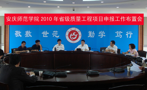 5月19日上午,永利官网在龙山校区行政楼二楼大会议室召开2010年度省级质量工程项目申报工作布置会,副院长张群出席会议,各学院行政主要负责人或分管教学的领导、教学秘书;人事处、教务处相关负责人;安全教育与军事理论课教研室、就业指导课教研室负责人参加会议。教务处处长程曦主持会议。