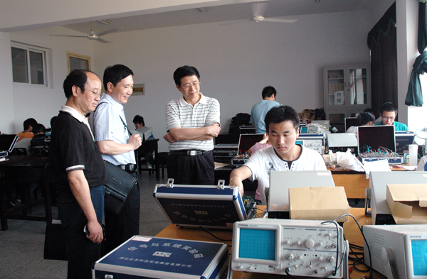 6月7日下午,省教育厅组织专家组对永利官网省级高校基础课实验教学示范中心建设项目——安庆师范学院物理实验教学示范中心进行项目验收。安徽师范大学黄时中教授,合肥师范学院曹卓良教授,永利官网物理与电气工程学院王其申教授、教务处程曦教授、国有资产管理处邵经武处长等专家组成员认真听取了示范中心工作汇报并进行了实地考察。