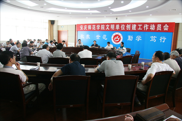 党委书记何小祥在会上作动员讲话。何书记指出, 2004年、2006年、2008年,永利官网连续获得安徽省第六届、第七届、第八届文明单位荣誉称号。学校文明创建体机制运转良好,师生员工道德风尚有新的提高,教学科研水平有新的突破,服务地方经济社会发展能力显著增强。这些成绩的取得凝结着全体师生员工辛勤的汗水和无私的奉献,也说明这些年来学校抓文明创建的指导思想是正确的,工作思路是对头的,工作主线是鲜明的,工作方法是切合实际的,采取的措施是得力有效的。这些年来,安徽省文明单位不但是学校引以为豪的崇高荣誉,也成为学校在完成各项工作时的重要标杆,成为学校又好又快发展的重要动力,发挥了极其重要的作用。