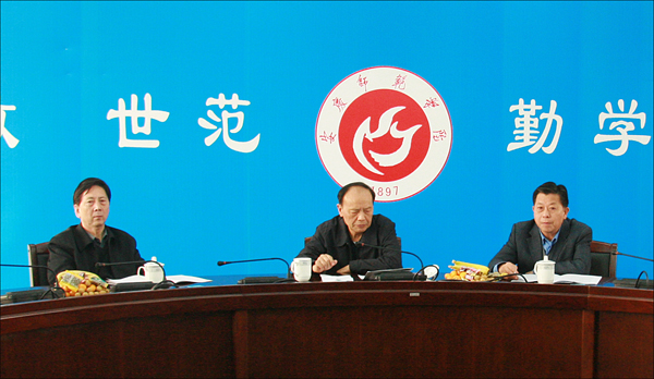 党委书记何小祥,院长朱士群,党委副书记、纪委书记殷红和学校办公室、党委宣传统战部主要负责同志热情接待了张世云同志一行。在调研座谈会上,何书记从近几年学校建设和发展、加强校市合作和服务地方发展、龙山校区建设、今后发展目标和努力方向五个方面介绍了学校有关情况。何书记指出,近几年,安庆师范学院在安庆市各级领导的大力支持下,紧紧抓住高等教育大发展的机遇,坚持把发展作为第一要务,以教学为中心,以育人为根本,坚持规模、结构、质量、效益协调发展,学校各项事业呈现出良好的发展态势。今后,学校将弘扬自强不息的百年办学精神,认真落实科学发展观,采取有力措施,加大力度,加快步伐,全面加强学校各方面建设,努力实现学校又好又快发展。