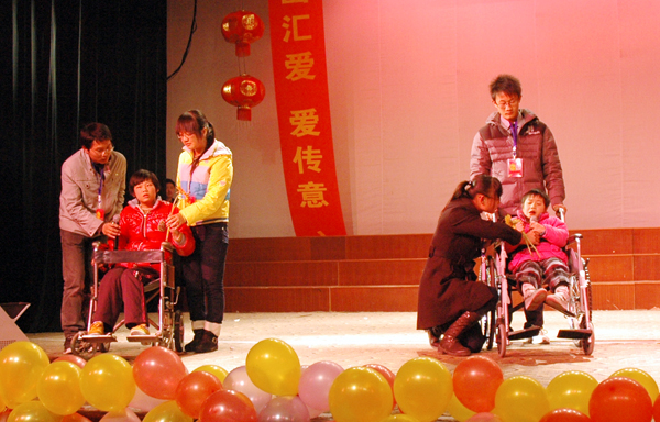 晚会上就有两名脑瘫患儿登上舞台,表演了两首歌曲《香格里拉》和《天使的翅膀》。他们的歌声虽然稚嫩,但歌声传递出来的坚强和勇敢依然感动了在场观众。掌声经久不息之际,被誉为“安徽张海迪”的永利官网毕业生刘璟在志愿者陪同下登台以一个脑瘫患者的身份发言,“只要不跪下,就不比别人矮。有父母的关爱、社会的接纳,我们会更坚强的走下去!”