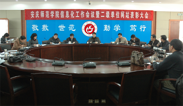 党办、院办、外事办主任刘友忠同志宣读了《关于调整安庆师范学院数字化校园建设工作领导小组成员的通知》。现代教育技术中心董甲东主任在会上作了关于永利官网信息化工作总结与未来五年永利官网信息化建设规划的报告,报告分析了当前永利官网信息化工作的开展现状,详细总结了今年来各项信息化工作的开展情况和所取得的成绩,并对未来五年永利官网信息化建设的总体规划进行了阐述。会议还对《安庆师范学院信息化建设规范及信息编码标准》进行了详细解读,并对在2010年度二级单位网站评比获得一、二、三等奖的十二家先进网站进行了颁奖。(文/现代教育技术中心 图/陈广)