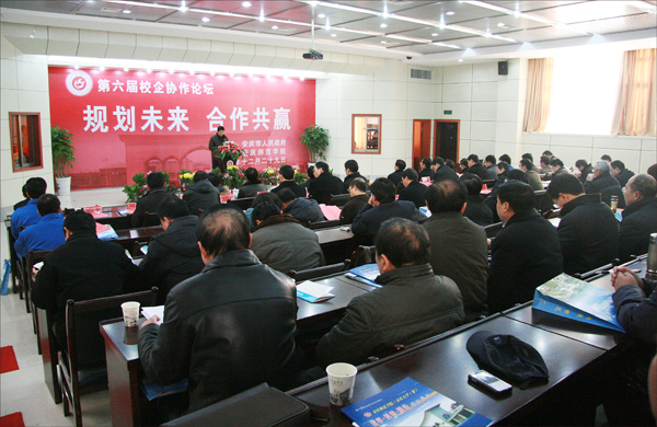 朱院长指出,校企协作论坛自2005年举办以来,取得了很大成果,合作与交流朝着广度和深度的方向不断发展,合作规模不断扩大,合作形式不断创新,合作领域不断拓展,积极推进了学校的人才培养和科技创新工作。尤其是第五届校企协作论坛举办至今的一年里,学校围绕论坛成果,以共赢发展为宗旨,以深化合作为目标,创新合作内容,完善合作机制,在服务地方经济社会发展方面迈出了新的步伐:一是创新干部交流和培养机制,精心选派教师干部到市直部门挂职;二是巩固和发展校企协作成果,选派科研骨干入驻安庆市企业担任科技特派员;三是深入推进产学研合作,服务地方经济社会发展;四是深入推进顶岗支教工程,促进基础教育均衡发展。