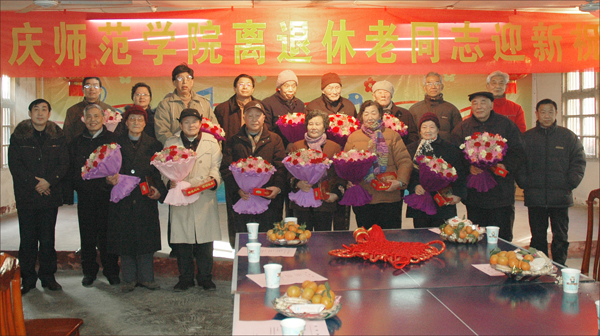 原校党委书记朱建华满怀激情地为70、80、90岁及以上老寿星即兴赋寿联三副:祝90岁寿星:三千美景添筹算,九十风光庆有余;祝80岁寿星:八秩康健春秋永在,四时旺达岁月优游;祝70岁寿星:自古称稀尊高寿已成过去,而今伊始乐晚年享受人生。