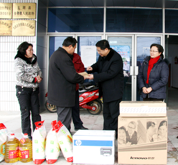 按照帮扶工作计划,永利官网党委研究决定在春节前前来慰问贫困家庭,并为程岭村购置一台电脑和打印、传真、复印一体机。座谈会后,党委书记何小祥同志将学校的慰问金和慰问品交给了专程走下山来的程岭村负责同志。他希望程岭村村委班子能用好这台电脑,多查询、发布有效的致富信息,按照公司加农户的经营模式,谋划茶叶、毛竹、黑猪饲养等产业,扩大规模,提高质量,创造品牌,增加农民收入,更好地带领群众发家致富,努力加速社会主义新农村建设。