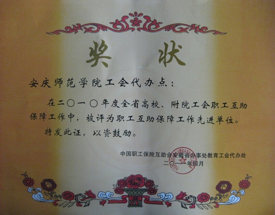 日前,在合肥召开的全省高校、附院工会2010年度财务经审暨互助保障工作会议上,永利官网工会分别被授予“2010年度工会财务工作先进单位”、“2010年度经审工作先进单位”和“2010年度职工互助保障工作先进单位”称号。