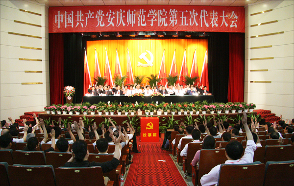 大会号召,全校各级党组织、全体共产党员和师生员工要更加紧密地团结起来,在新一届党委的坚强领导下,继续解放思想,不断凝心聚力,敢于挑战,善于创新,勇于拼搏,以更加开阔的视野、更加昂扬的斗志、更加扎实的作风,共同谱写安庆师范学院跨越奋进的美好篇章,为建设应用性突出、特色鲜明的高水平大学而努力奋斗!