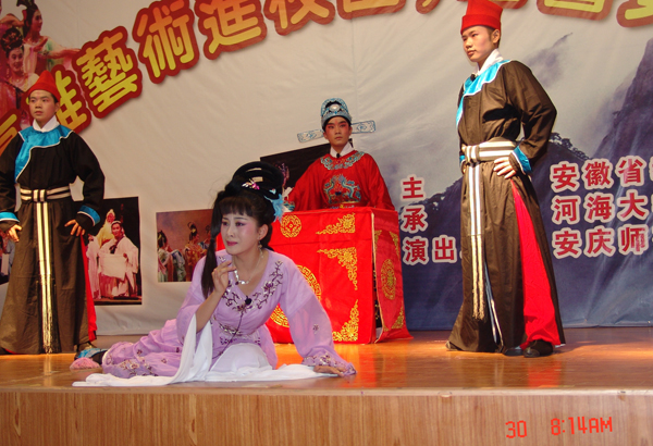 在本次“走近大师,感受经典,陶冶情操,提高修养”为主题的演出中,永利官网黄梅戏艺术团此次赴马鞍山演出受到了省教育厅领导的关注和指导,也得到安徽工业大学和河海大学文天学院两所兄弟的有力配合和热情接待。