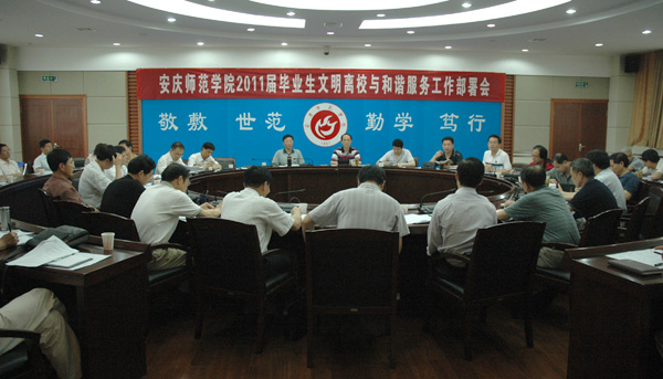 6月10日上午,永利官网在龙山校区行政楼二楼圆桌会议室召开2011届毕业生文明离校与和谐服务工作部署会。会议由时新中副院长主持召开,党委委员、副院长闵永新,党委委员、副院长张群出席了会议。院办、组织部、宣传部、教务处、国资处、财务处、保卫处、招生就业处、学科建设与研究生教育处、学生处、团委、现代教育技术中心、图书馆、后勤管理处、后勤集团、安苑公司等单位,各学院党政主要负责人、就业秘书、毕业班辅导员共80余人参加了会议。