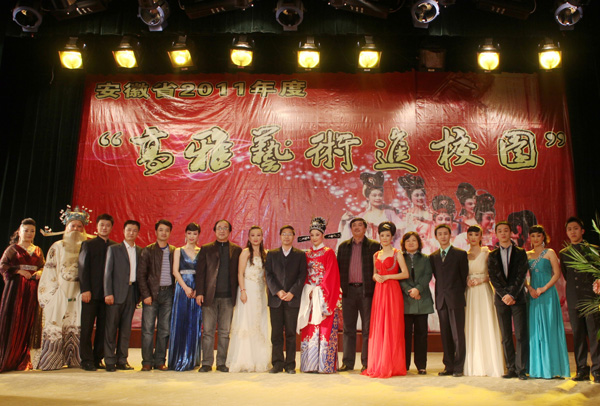 11月16日晚,安庆市黄梅戏艺术剧院“高雅艺术进校园”专场演出在永利官网龙山校区音乐厅内隆重举行。此次活动由安徽省文化厅、财政厅、教育厅联合主办,安庆市文化广电新闻出版局承办。永利官网党委委员、副院长汪时珍出席观看了演出活动,音乐学院、黄梅剧艺术学院、校团委等领导同志陪同观看了演出,四百余名师生济济一堂充分领略黄梅艺术的精华。