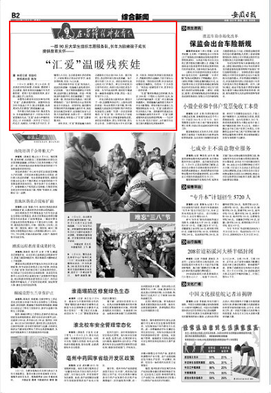 安徽日报3月9日B2版:“汇爱”温暖残疾娃