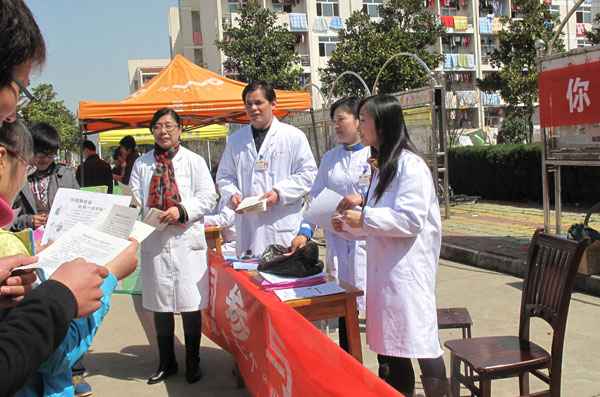 围绕今年的宣传主题“你我共同参与,消除结核危害”,校医院在分管副院长闵永新的全程指导下,举办了2012年世界防治结核病日主题宣讲,突出了结核病防治核心信息宣传;举办了志愿者结核病防治知识咨询传播行动及签名活动,动员更多社会力量普及结核病防治知识;为拓展宣传的深度和广度,校医院通过校广播站、校园网、张贴宣传画、悬挂横幅、制作展板等形式全方位普及结核病防治核心信息及相关知识。活动现场散发了结核病防治知识、各类健康教育处方2500多份、举办了有奖知识问答和疑难解答。