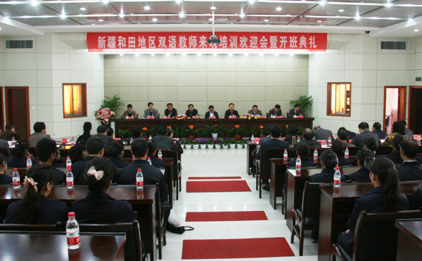 省人力资源和社会保障厅副厅长刘少华在讲话中对永利官网承办双语教师培训的各项准备工作给予了充分肯定。他指出,人才援疆作为新一轮援疆工作的重要组成部分,是五个援疆内容之一。他要求各有关部门要着眼大局、齐心协力、立足实际,确保培养工作取得实效。他对学员提出三点希望:一是要热爱祖国、提升境界,努力成为维护民族团结的可靠力量;二是要潜心学习、大胆实践,努力提升和田地区中小学和学前幼儿园教育的整体质量;三是要严格自律,完善自我,努力维护新疆青年的良好形象。