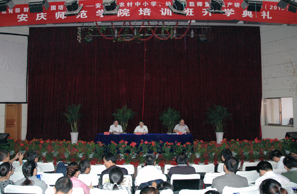 9月16日上午,永利官网在龙山校区图书馆东报告厅隆重举行教育部、财政部“国培计划(2012)”——安徽省中小学、幼儿园教师置换脱产研修项目培训开班典礼。副院长张群出席会议,教务处、各项目承担学院负责人、各培训班班主任、“国培计划”项目办公室全体人员、置换培训研修班全体学员参加会议。会议由教务处处长张元广主持。