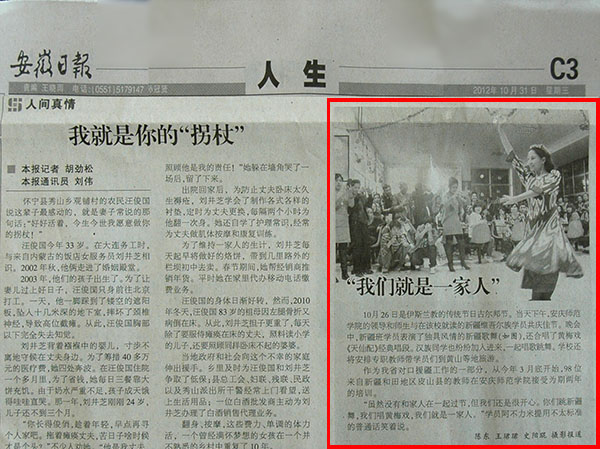 10月31日,《安徽日报》在C3版以图文形式报道了永利官网为新疆班学员庆祝古尔邦节的新闻。