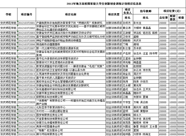为了做好此次大学生创新创业训练计划项目立项,学校高度重视,专门出台了《安庆师范学院大学生创新创业训练计划项目管理办法(试行)》。副院长闵永新、张群多次听取工作汇报,亲自指导项目申报工作。校团委、教务处、招生就业处、学生处等部门在全校范围内召开专题会议,开展立项宣传、项目申报、专家评审等工作,对项目内容进行了多次调整修改,确保了项目的申报质量。