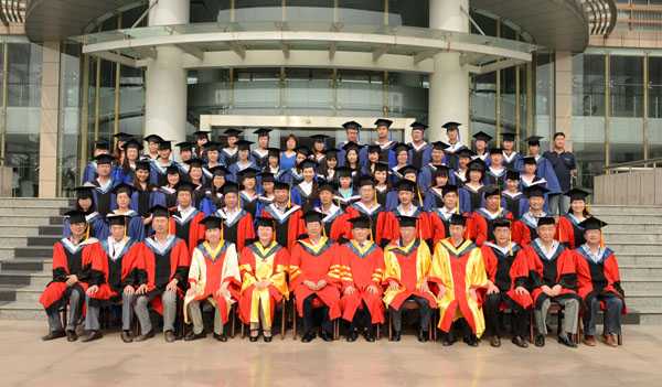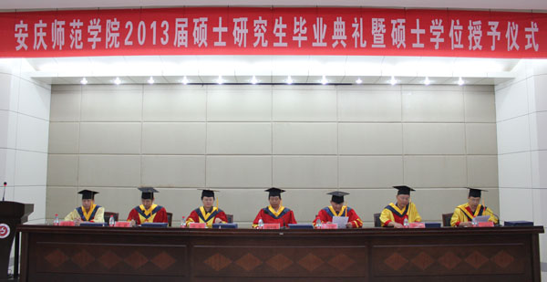 校硕士学位评定委员会主任、院长朱士群一一为各位毕业研究生拨穗,校硕士学位评定委员会委员、副院长张群宣读了2013届获得硕士学位人员名单,各位校领导为全体毕业硕士研究生颁发了毕业证书和学位证书。