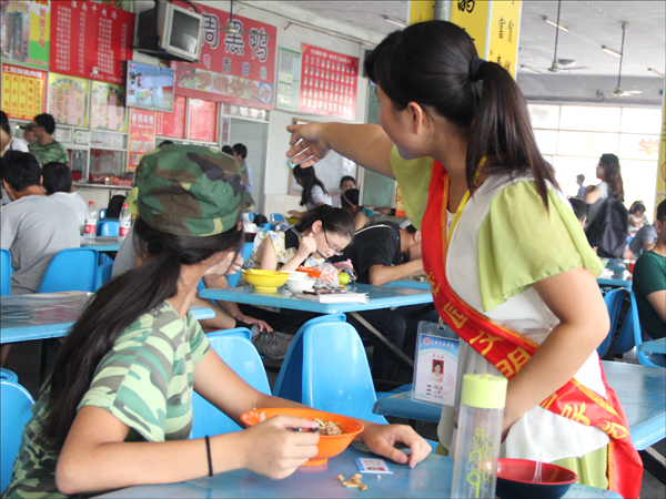 据伙食管理委员会介绍,10月份将会开展一个月的文明就餐活动,各个学院都会参与其中,学生干部和志愿者都会以自身行动引导同学们营造良好的就餐环境。(学生记者 鲍声美)