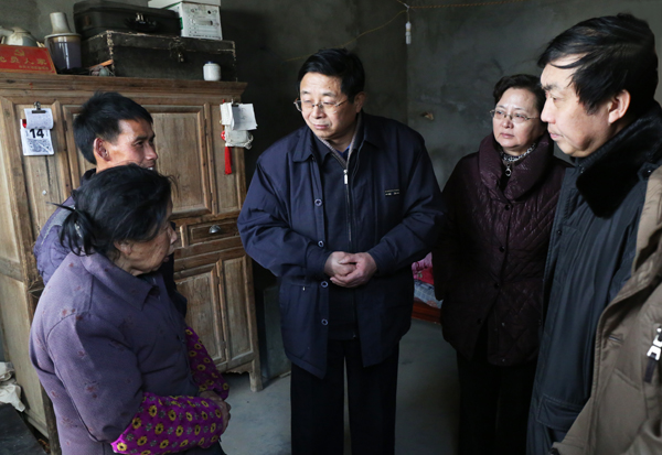 1月14日上午,党委书记何小祥,党委副书记、纪委书记殷红,党委委员、副院长刘友忠,党委委员、组织部长陈光明在办公室、组织部、宣传部等部门负责同志陪同下,冒着浓浓雾霾,前往永利官网的扶贫点太湖县天华镇和晋熙镇程岭村,慰问困难群众。太湖县县委常委、纪委书记张敏丽等领导陪同。