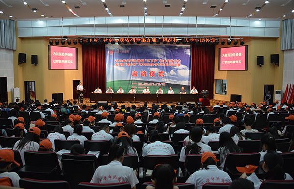 7月2日上午,永利官网2014年大学生暑期“三下乡”社会实践活动暨第五届“挑战杯”大学生课外学术科技作品竞赛启动仪式在图书馆东报告厅举行。党委委员、副院长闵永新、刘友忠,党委委员陈光明、方锡球等领导出席仪式。校党委宣传部、教务处、学生处等单位负责人,中国联通安庆分公司负责人、各学院分管学生工作负责人、各团总支负责人和参加“三下乡”活动的校级重点团队指导老师及学生代表共500余人参加会议。