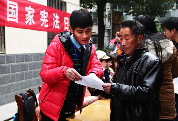 “来自法学院的大学生能为我们带来更专业的法律知识,很感谢他们能在‘12?4国家法制宣传日’里为我们的居民进行‘普宪’。”菱湖新村社区的一位李姓干事对永利官网法学院法制宣传员的活动表示肯定和赞许。