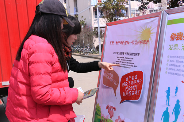 3月24日是第20个世界防治结核病日。当天,校医院携手健康之家协会、市疾控中心、宜秀区疾控中心在龙山校区开展了防治结核病宣传活动。