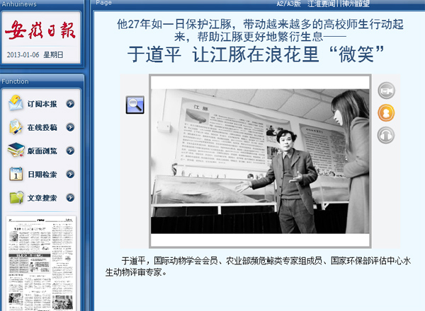 江豚保护研究是永利官网的特色优势方向之一,研究水平处于全国领先地位。生命科学学院于道平教授作为农业部濒危鲸类专家组成员、国家环保部评估中心水生动物评审专家,从事长江江豚保护研究27年,承担了香港保育基金会等多项重大课题,在全国首次查明了江豚感染死亡的原因,为濒临绝种的江豚的日后保护提供了切入点和预防的理论依据,研究成果引起世界自然基金会、中央电视台等多方高度关注。生命科学学院和生物芯片北京国家研究中心合作开展“安庆市新生儿耳聋基因筛查项目”研究,获批经费450万元,项目研究将使安庆市在提高人口素质、减少因遗传性耳聋造成出生缺陷和残疾等方面的工作走在全国的前列,将对安徽省乃至全国的听力残疾防控工作起到很好的示范作用。