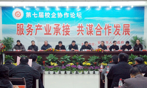学校与安庆市人民政府连续举办了七届“校企协作论坛”,听取了用人单位在人才培养方面的意见,进行了产学研合作等方面的对接,与中石化安庆分公司、ATG公司、华茂集团、曙光集团等多家企事业单位签订了300多项产学研协作项目,共建了60多个实习、实训基地。学校还邀请安庆各县市区的主要领导来校就如何更好地服务地方经济社会发展进行座谈和研讨,邀请安庆市大中企业的企业家来校考察,进一步推进了校市合作向纵深发展。