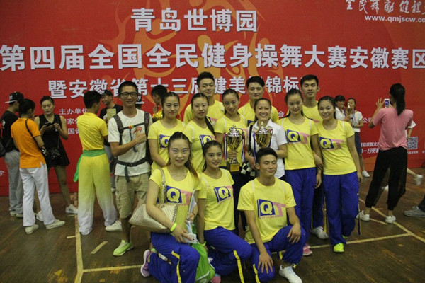 6月20日,体育学院健美操队在潮芳和王云辉两位专业老师的带领下,参加了在合肥国际外国语学校举办的2015年安徽省第十三届健美操锦标赛暨全国全民健身操舞大赛安徽分站赛,一举夺得本次比赛冠军。