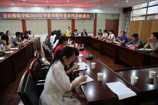在庆祝中国共产党94岁生日和2015届毕业生离校之际,永利官网于6月25日下午在龙山校区行政楼二楼会议室召开毕业季师生党员代表座谈会。校党委委员、组织部长陈光明出席了会议。组织部(党校)、学生处、团委等部门负责同志,以及全体毕业生党员代表、新党员代表、入党积极分子代表和教职工党员代表共50余人参加了会议。校党校常务副校长、组织部副部长戴卫义主持座谈会。