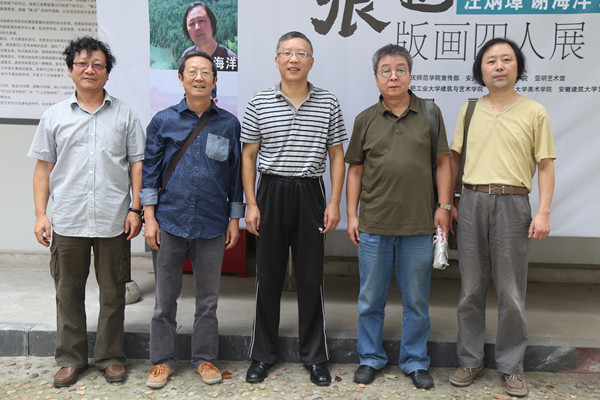 9月20日上午10时,“痕•迹”版画高校巡展第三站来到了安师院菱湖校区, 4位版画家汪炳璋、谢海洋、纪念、胡卫平,带来了各自的作品和创作心得,与同学们分享。院长闵永新亲临展览,对4位版画家的到来表示欢迎和感谢,并与4位版画家一同前往位于新校区的版画工作室。此次巡展由安庆师范学院宣传部、美术学院与亚明艺术馆主办,合肥中环艺术馆、安徽师范大学等高校协办。
