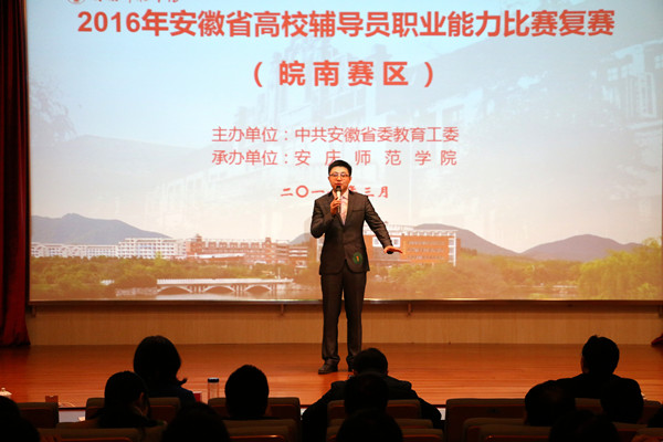 3月11日,为期2天的安徽省高校辅导员职业能力比赛(皖南赛区)复赛在安庆师范学院举行,来自皖南地区28所高校的39位选手同台竞技,通过笔试、主题班会、主题演讲、谈心谈话和案例分析5个环节的精彩比拼,给现场观众带来了一场高质量的视听盛宴。