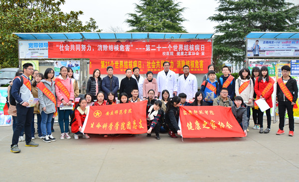 3月24日是第二十一个“世界防治结核病日”,当天,校医院联合宜秀区疾控中心以及大龙山镇卫生院在安苑食堂开展防治结核病主题宣传活动。健康之家协会和生命科学学院的志愿者们也积极参与。今年的防治结核病宣传活动秉承“社会共同努力,消除结核危害”的主题,向同学们普及结核病相关知识,提高大家的疾病防治意识。