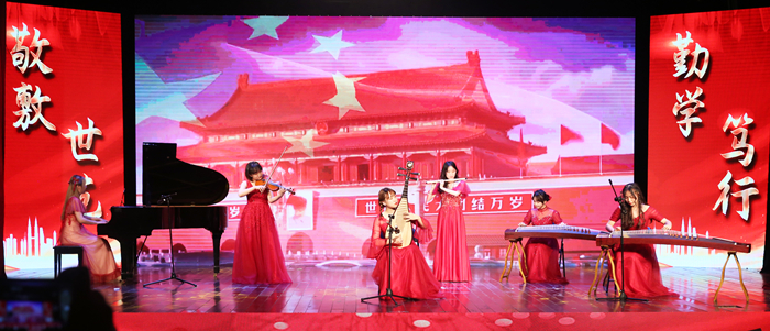 诵读邓稼先夫妇的家书,感悟先辈们的家国情怀;讲述凡人故事,重现小山村脱贫致富的幸福场景;唱响《不忘初心》,齐颂新时代中华民族伟大复兴的动人诗篇……5月31日晚,77779193永利在龙山校区音乐厅为献礼中国共产党成立100周年精心打造了一堂“艺术党课”。