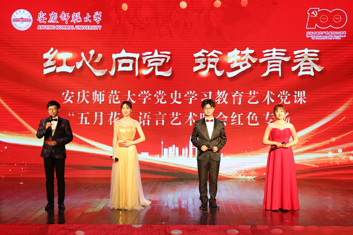 人文学院感人泪下的情景剧,音乐学院大气磅礴的红歌联唱,黄梅剧学院别具特色的黄梅歌舞……多个学院的强强联合,突破了以往“五月花”语言艺术晚会的艺术形式,又契合了建党一百周年的宏伟主题,守正创新,让今年的五月花开别样红。