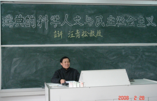 2月27日下午,党委副书记、院长汪青松教授在政法学院作了题为“瑞典的科学人文与民主社会主义”的专场学术报告,政法学院院长张洪波教授主持报告会,政法学院全体教师和部分学生代表聆听了报告。