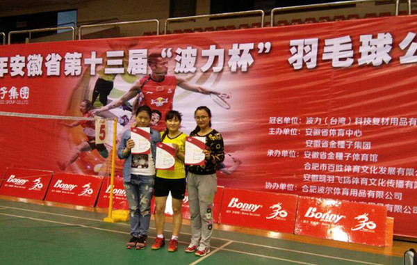 5月21日至22日,安徽省第十三届“波力杯”羽毛球公开赛在安徽省金种子体育馆隆重举行。在体育学院王友亮老师的带领下,体育学院代表队参加了本次比赛。经过为期两天的奋力拼搏,体育学院2012级羽毛球专选班孙如同学荣获本次比赛A组女子单打冠军;江娜同学荣获A组女子单打第四名;胡彩凤同学荣获A组女子单打第五名。