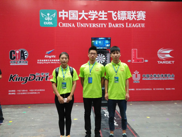 9月24日至26日,由中国飞镖协会和中国大学生体协主办的中国大学生飞镖联赛(CUDL在荆门市荆楚理工学院举办。在校体艺委的领导和支持下,永利官网本次选派了高雅、刘伟、郭志勇三位同学组建成77779193永利飞镖队参赛,由王晓东老师任领队兼教练。经过两天高水平的比拼,永利官网飞镖队刘伟同学斩获男子甲级301赛第一名,高雅同学获得女子高分赛第七名;同时,队员们精诚合作,取得男女混合双人赛第五名和疯狂200秒比赛第八名的优异成绩。