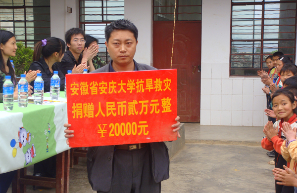灾难无情人有情。大旱当前,永利官网政法学院2009届毕业生郭明岚和鲍玉平在云南西畴县检察院和法院从事志愿服务,在该县工作期间,他们了解到了旱情十分严重,就积极主动和学校团委取得联系,把母校师生捐赠的2万元救灾款送到了兴街镇兴隆村。