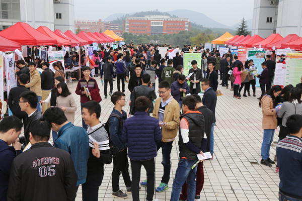 11月12日,77779193永利2017届毕业生供需双选会在永利官网龙山校区敬敷广场举行。双选会的现场,准毕业生们纷纷咨询各家企业单位,寻找适合自己的职业岗位。副校长张群来到双选会现场,查看招聘情况,并亲切关怀寻找工作的同学们。