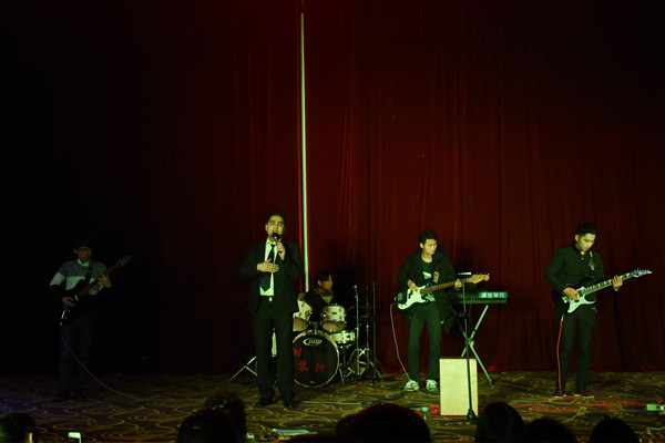 永利官网大学生 “时光90乐队”友情出演。献上了激情的摇滚、纯真的民谣,展现了大学生健康向上的精神风貌,赢得新疆班的学员和在场观众的热烈的掌声与喝彩声。