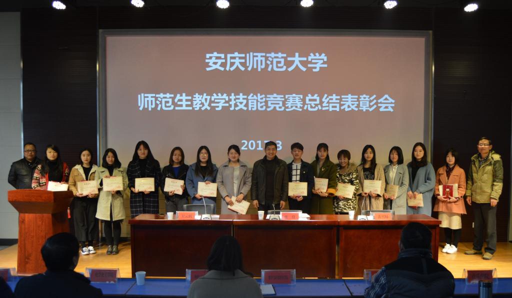 3月8日下午,永利官网举行2016年师范生教学技能竞赛总结表彰会,副校长张群、教务处负责同志出席会议并为获奖师生颁发证书。第七届安徽省高等学校师范生教学技能竞赛及第八届中国师范大学理科师范生教学技能创新大赛获奖师生、相关学院负责同志、学科教学论教师和师范生代表参加了会议。