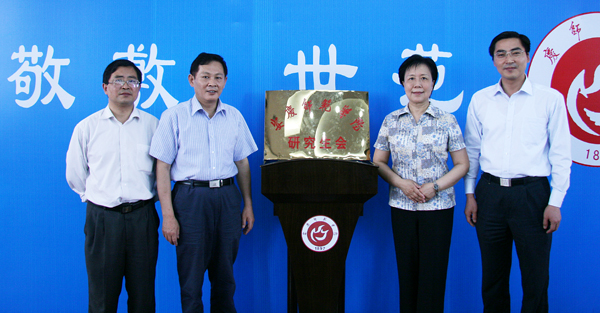 党委副书记、副院长朱士群、岳西县委书记、新当选的研究生会主席汪谦慎共同为安庆师范学院研究生会揭牌。