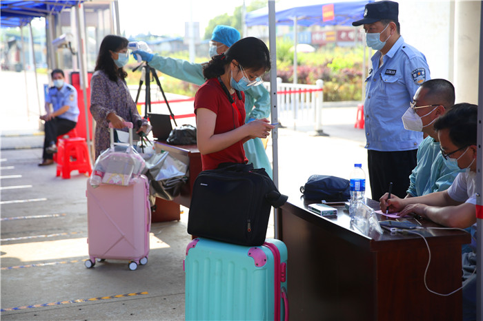 返校现场,各项工作开展有条不紊。返校入学检查点,返校同学佩戴口罩、自觉测温、间隔排队、配合查验,通过专用通道入校。工作人员认真开展体温检测、身份信息核验、查验健康码、发放防疫物资和学生返校指南,引导学生乘坐校园公交。学生公寓入口,宿舍管理人员为返校学生更换口罩、行李消杀和安排入住公寓。学生食堂,环境整洁卫生,饭菜品种丰富,工作人员操作规范,学生排队取餐和就餐保持安全距离。(文/校办 图/陈东 王波 宣传部)