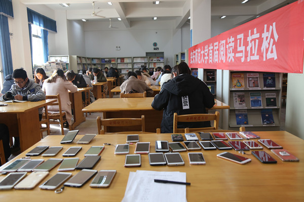 “阅读马拉松活动非常棒,一群志同道合的同学一起读书,从而有这样一次与众不同的阅读经历,让我很满足。”吴雨晴说自己今年大三了,比以前更忙了,读书的时间明显少了很多,所以想借着这次机会暂时丢掉其他事情静下心读一本好书,充实自己。(文/学生记者 汪艳 图/学生记者 刘敏)