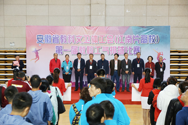 10月20日至21日,由安徽省教科文卫体工会主办,永利官网工会承办的安徽省教科文卫体工会江南片高校第一届教职工气排球比赛在永利官网举行。副校长汪时珍,各江南片高校工会领导参加比赛开幕式并到场观赛。江南片高校共10支代表队的120余名运动员参加比赛。